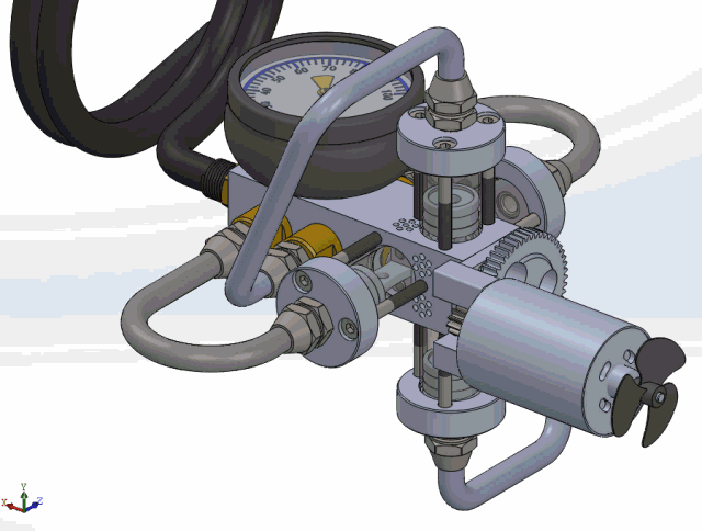 1. 进气过程:转子转动时,阴阳转子的齿沟空间在转至进气端壁开口时,其空间最大,此时转子齿沟空间与进气口的相通,因在排气时齿沟的气体被完全排出,排气完成时,齿沟处于真空状态,当转至进气口时,外界气体即被吸入,沿轴向进入阴阳转子的齿沟内。当气体充满了整个齿沟时,转子进气侧端面转离机壳进气口,在齿沟的气体即被封闭。